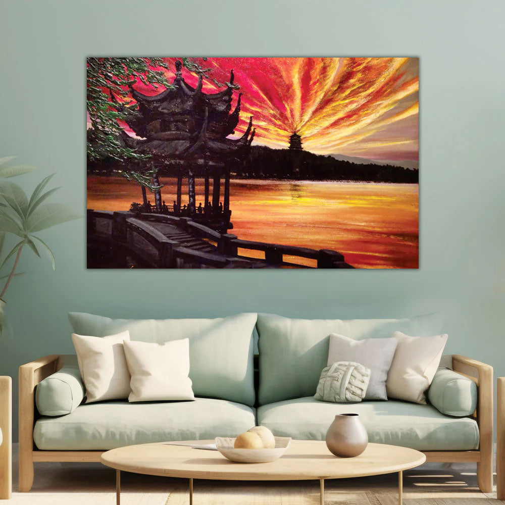 Canvas Painting – Beautiful Buddhist Monastery Art Wall Painting