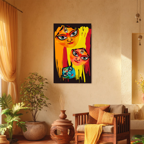 Abstract Devi Durga Faces Canvas Wall Art for Home & Office | Vibrant Goddess Kali & Shakti Inspired Modern Painting