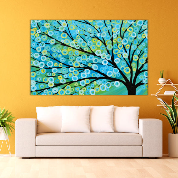 Blue and Green Abstract Tree Wall Painting for Living Room, Bedroom, Office, Hotels, Drawing Room