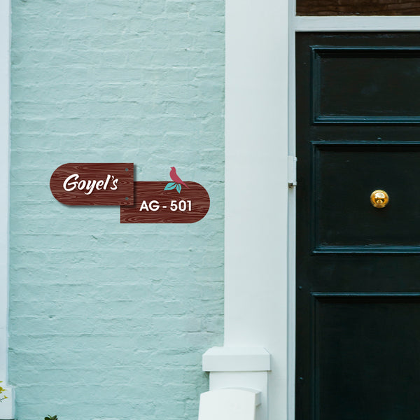 Modern Wood Grain Premium Name Plate With Bird Illustration | Personalized Apartment Door Sign Simple, Clean, And Classy