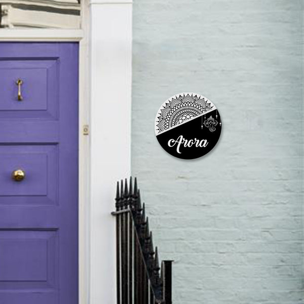 Traditional Mandala Ganesh Ji Round Name Plate | Stylish Wall Art For Indian Homes